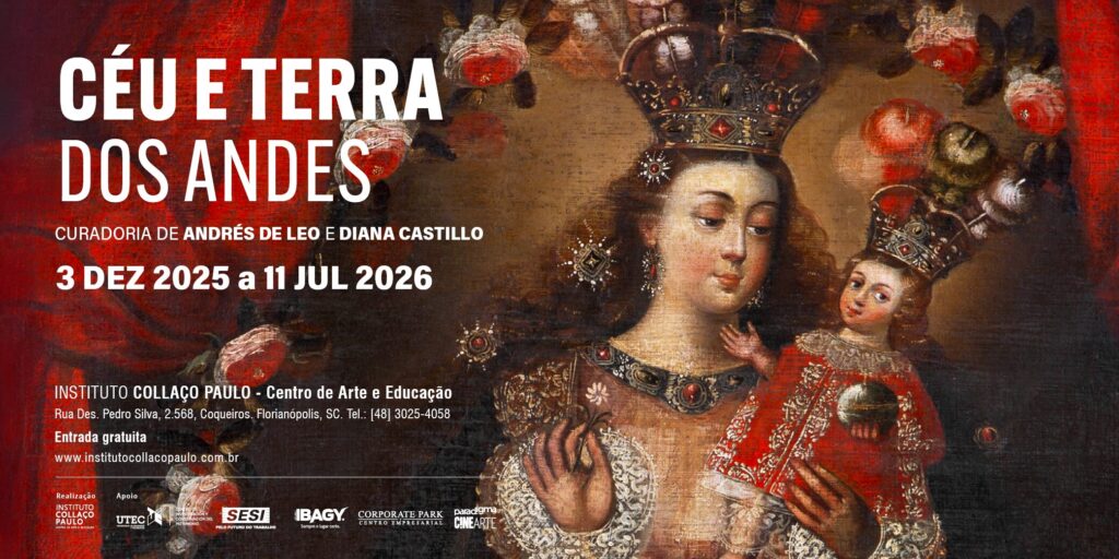 Mais uma vez, o Instituto Collaço Paulo – Centro de Arte e Educação integra a 12ª Maratona Cultural, megaevento que ao longo dos anos impacta cerca de um milhão de pessoas com a oferta gratuita de atrações musicais, de dança, do teatro, do circo, da literatura, do cinema, das artes visuais. Em quatro dias, entre 20 e 23 de março, a iniciativa em Florianópolis (SC) aciona 326 ações culturais em 68 endereços, fruto de uma rede de parcerias empresariais e institucionais que possibilita o acesso a todas as atividades. O instituto participa com a mostra “Céu e Terra dos Andes” e, no dia 21, no sábado, às 15 horas, com o lançamento do livro “Tudo se Deseja Ver – Mergulhos na Coleção Collaço Paulo – Volume 2” (Aaesc). Apresenta também os novos produtos editoriais em versão e-book que envolvem a mostra “Etérea”, o catálogo, o material educativo “Em Busca de Sentidos” e a ferramenta interativa “Cartografia de Sentidos”.