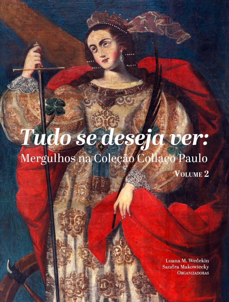 Em versão e-book, o quinto catálogo lançado pelo Instituto Collaço Paulo, tem a coordenação editorial de Francine Goudel e Néri Pedroso. Marcelo Collaço Paulo, diretor-presidente da instituição, escreve na apresentação “Entre Santos, Arcanjos e Desejos”. Ele expõe parte das sensibilidades que movem o casal colecionador na constituição deste acervo. Com a sua mulher, Jeanine, em suas viagens procuram as igrejas antigas, percorrem os corredores, os claustros dos mosteiros, as capelas, olham com atenção os tetos e os altares “com a intenção de captar e consumir cada imagem. Igrejas são templos democráticos da arte para nós e para todos”.