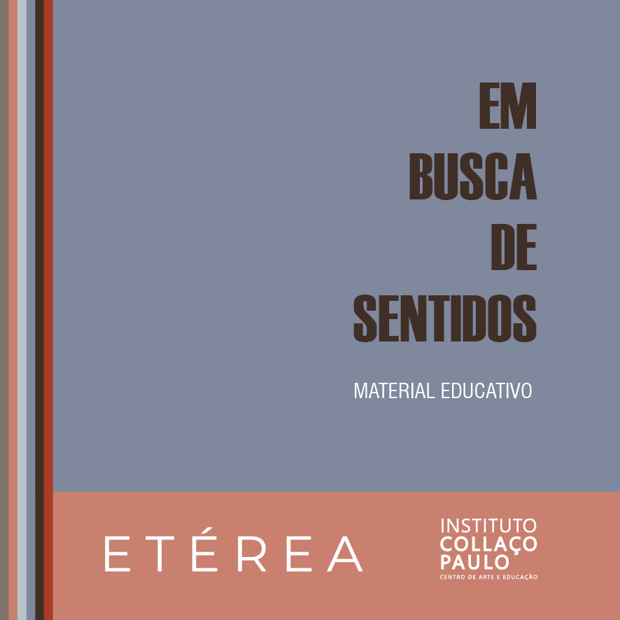 Os materiais educativos são suportes sobretudo para os professores. Eles podem ser aplicados em salas de aula, apontam possíveis pedagogias e práticas. “Em Busca de Sentidos” se compõe de seis imagens que buscam dimensionar o todo e abrir outras possibilidades de leitura. Cada obra é acionada por uma pergunta, assim como por palavras-chaves. Além de fotos e da orientação educativa, há um glossário com a biografia dos artistas e algumas palavras que aparecem tanto na parte textual quanto na ferramenta interativa “Cartografia dos Sentidos”. Essa, por sua vez, aprofunda a reflexão com os vocábulos, uma espécie de jogo em que os estudantes podem estabelecer múltiplas correlações entre a palavra e a imagem.