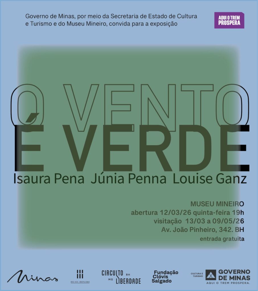 Desenho, pintura e território se entrelaçam na exposição “O Vento é Verde”. O Museu Mineiro recebe obras inéditas de Isaura Pena, Júnia Penna e Louise Ganz, artistas e professoras da Escola Guignard. A mostra investiga o que há de vivo e mutante em nossas paisagens. Das plantas baixas históricas do Parque Municipal às marcas de […]
