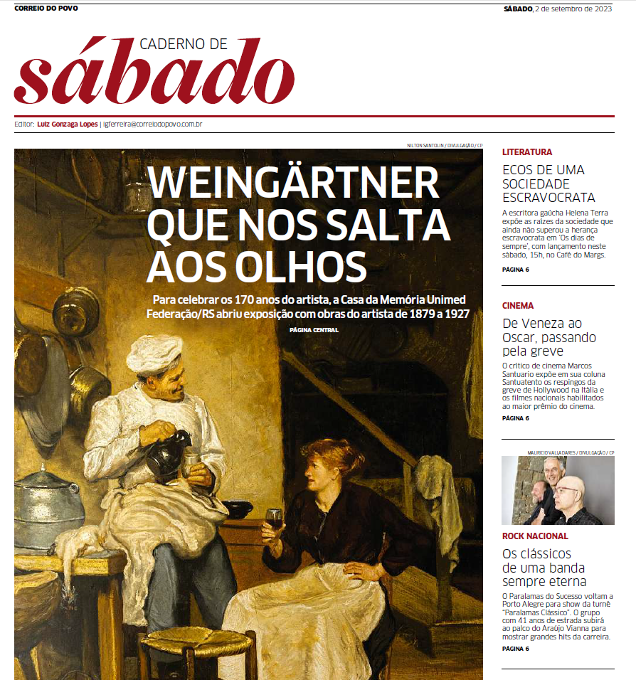 Notícia no Correio do Povo destaca a curadoria: ” Para celebrar os 170 anos de Pedro Weingärtner (1853–1929), cumpridos em 26 de julho, a Casa daMemória Unimed Federação/RS abriu nesta última quinta-feira uma exposição com obras do artistarealizadas entre 1879 e 1927. Quase a totalidade das peças é inédita ou não exibida desde há muitas […]