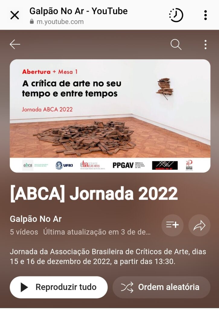 A Jornada ABCA que aconteceu na última semana, marcou duas tardes de reflexões pertinentes para o campo das artes. Com o tema A Crítica de Arte no seu Tempo e entre Tempos, a Jornada aconteceu em formato on-line, nos dias 15 e 16 de dezembro com transmissão pelo YouTube. O encontro teve oito comunicações, distribuídas em […]
