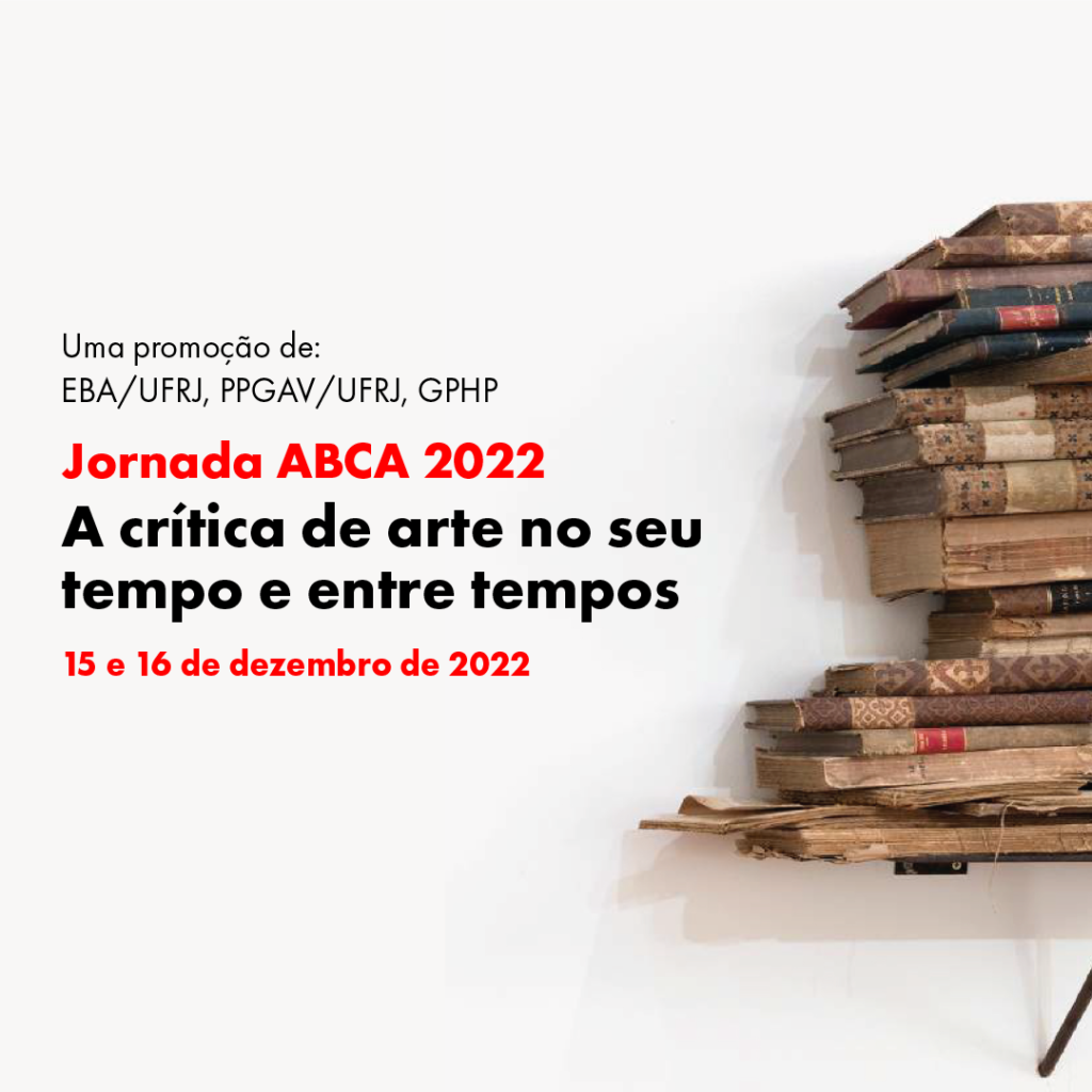Jornada ABCA 2022 A Crítica de Arte no seu Tempo e entre Tempos Evento on-line 15 e 16 de dezembro A Escola de Belas Artes da UFRJ, juntamente com seu Programa de Pós-Graduação em Artes Visuais (PPGAV), com o apoio dos Grupos de Pesquisa Paisagens Híbridas (GPPH) e História do Paisagismo (GPHP), sediará a Jornada da […]