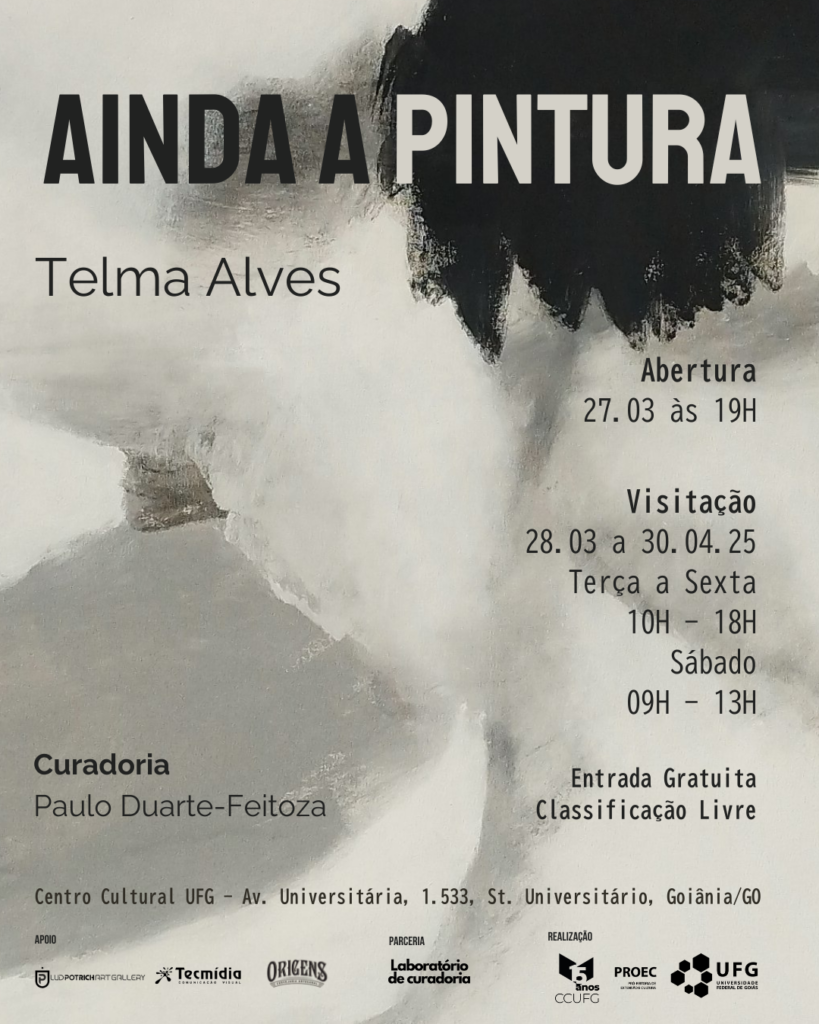 imagem: Divulgação O Centro Cultural da UFG inaugura, no dia 27 de março de 2025, às 19h, a exposição AINDA A PINTURA, individual de Telma Alves, uma das mais importantes artistas da cena contemporânea goiana. Com curadoria do professor e crítico de arte Paulo Duarte-Feitoza, a mostra apresenta um conjunto de pinturas recentes da artista, […]